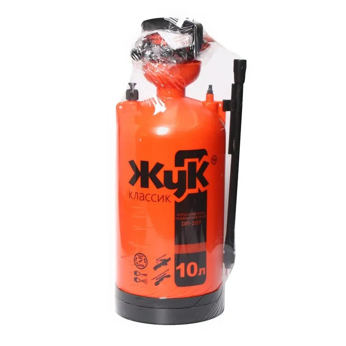 Опрыскиватель помповый ОП-207, 10 л, термоусадка, пластиковый брандспойт 208, «Жук»
