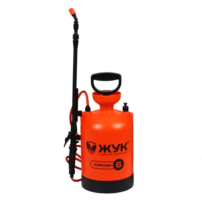 Самым главным помощником на любой даче станет Опрыскиватель ОП-209 «Жук». Он разработан специально для вашего удобства. Что бы вы ни делали: поливали растения, мыли окна или автомобили, травили вредителей – без него не обойтись! В комплекте идет заливная воронка, которая будет незаменима при использовании сухих препаратов, которые необходимо разводить водой и процеживать перед использованием. Пластиковый телескопический брандспойт поможет заботиться о растениях высотой до 970 мм, а встроенная регулировка мощности струи дает вам возможность использовать «Жук» как для опрыскивания, так и для полива.