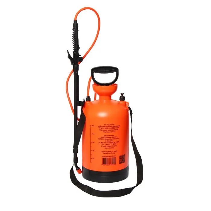 При покупке вы получите полный комплект, включающий в себя бак с цельнолитой заливной воронкой, легкий телескопический брандспойт (650-970 мм), удобную подставку и наплечный ремень для более комфортного использования. Упаковка – термоусадочная пленка. Мы уверены: вас порадует его цена, качество и длительный срок службы.