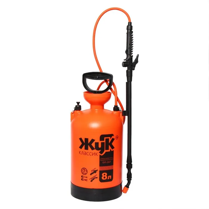 Используйте опрыскиватель для обработки деревьев и сельскохозяйственных культур, профилактики их заболеваний, истребления насекомых-вредителей, распыления химических веществ, а также для проведения дезинфекции различных учреждений. Изделие работает по принципу помпы.