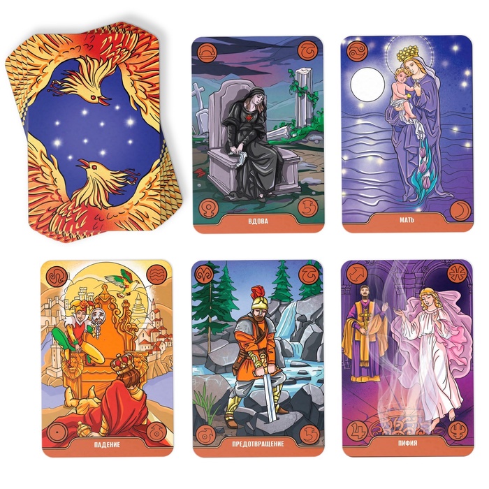 Оракул «Симболон» стал результатом многолетнего труда немецких астрологов и психологов. По словам авторов, главная цель колоды – помочь человеку разобраться во внутреннем мире, полном тайн и противоречий.