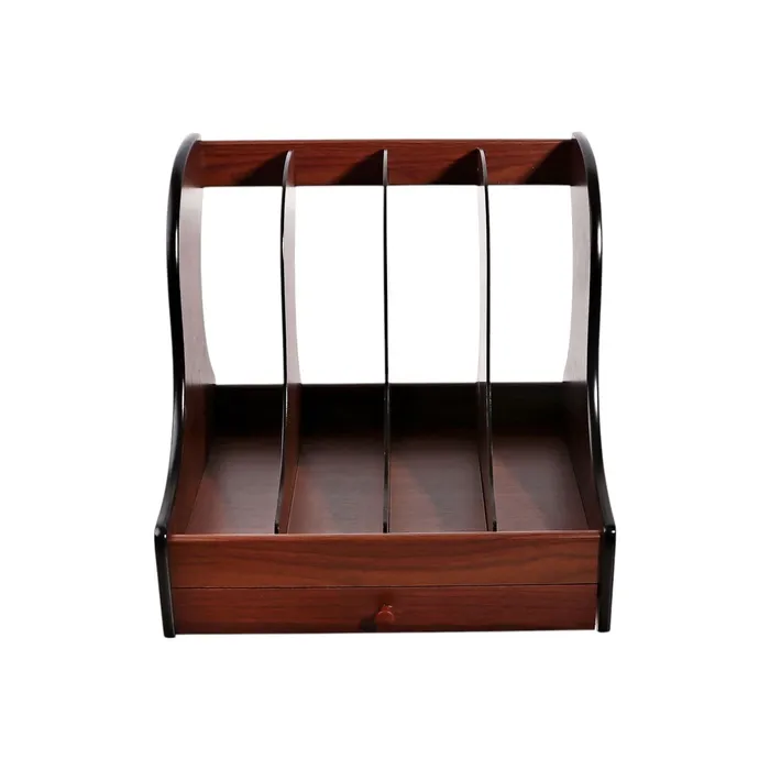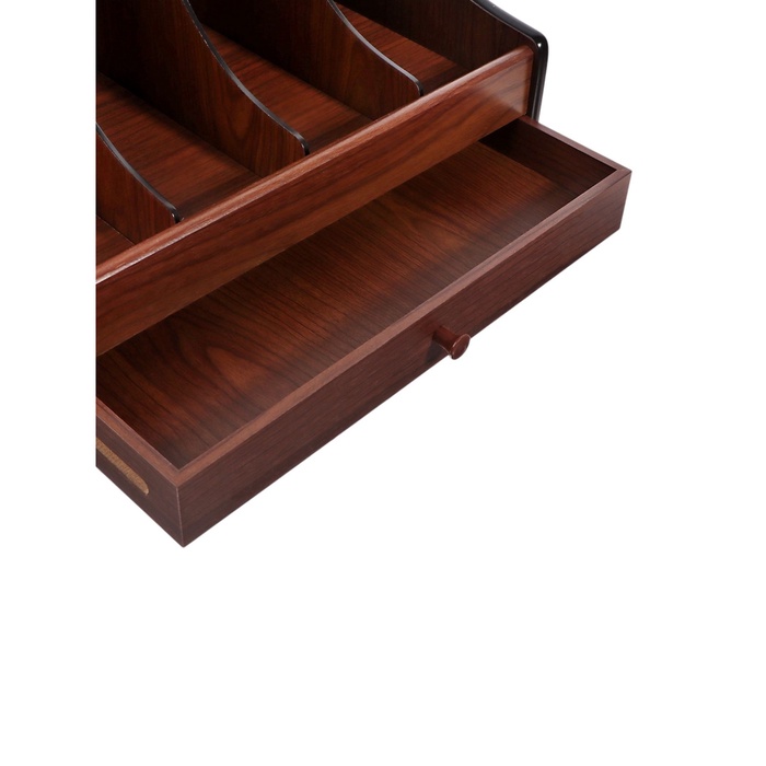 Деревянный органайзер с тремя секциями и ящиком — универсальное решение для хранения мелочей в офисе или дома. Компактные размеры (31×27×32 см) позволяют удобно разместить его на столе, не занимая много места.