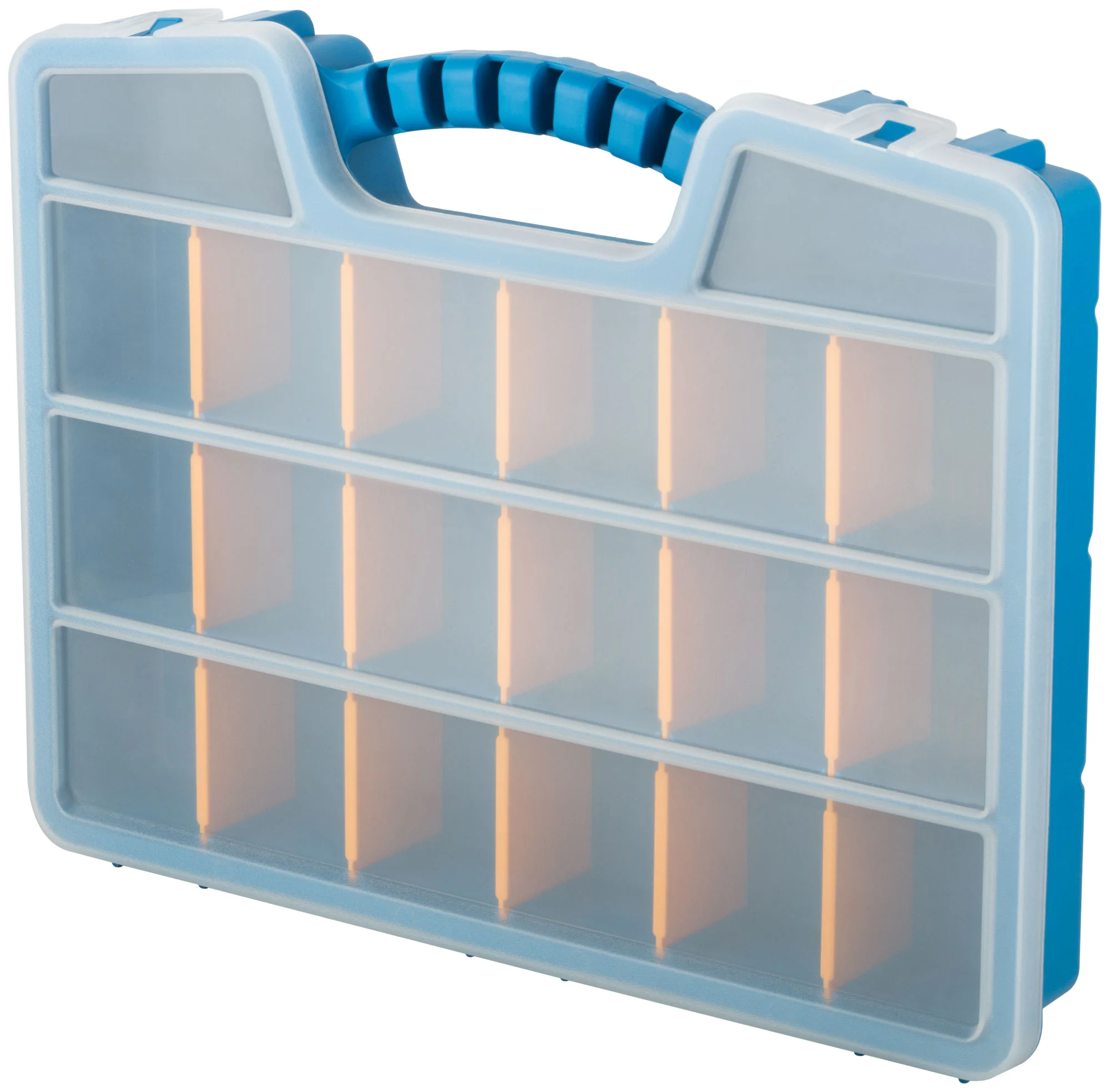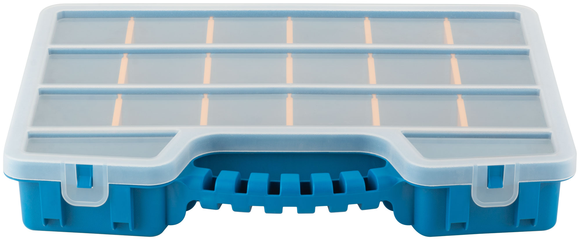 Изготовленный из прочного пластика, органайзер оснащен защелками, надежно фиксирующими крышку. Переставные перегородки позволяют адаптировать внутренние отделения под ваши нужды, обеспечивая максимальную гибкость в организации пространства.
