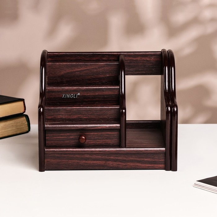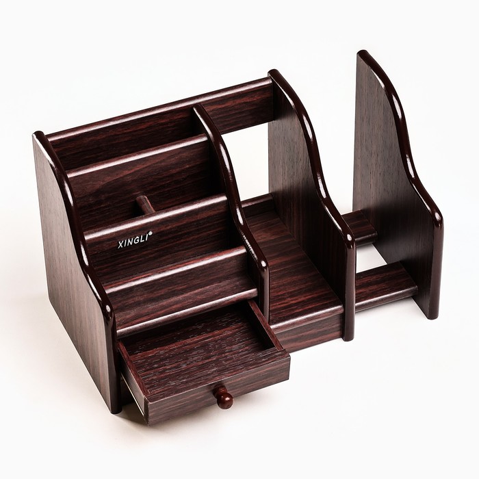 Органайзер 5 секций, 1 выдвижной ящик, 1 выдвижная полка, серия Ясень шимо темный с кантом темным