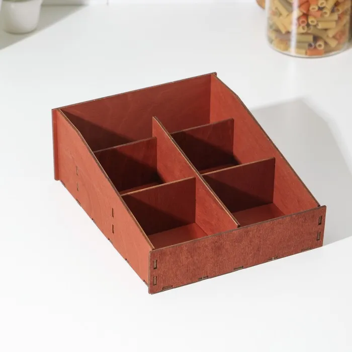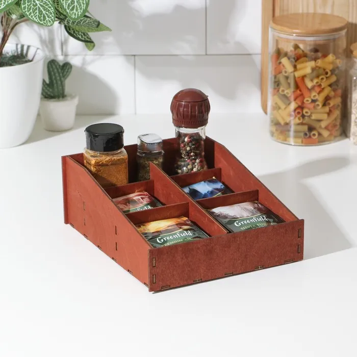 Органайзер деревянный для чая и кухонных принадлежностей Доляна, 22×19×8 см, цвет мокко — Характеристики