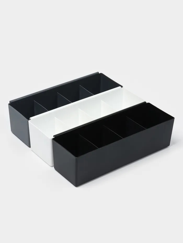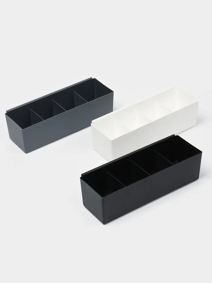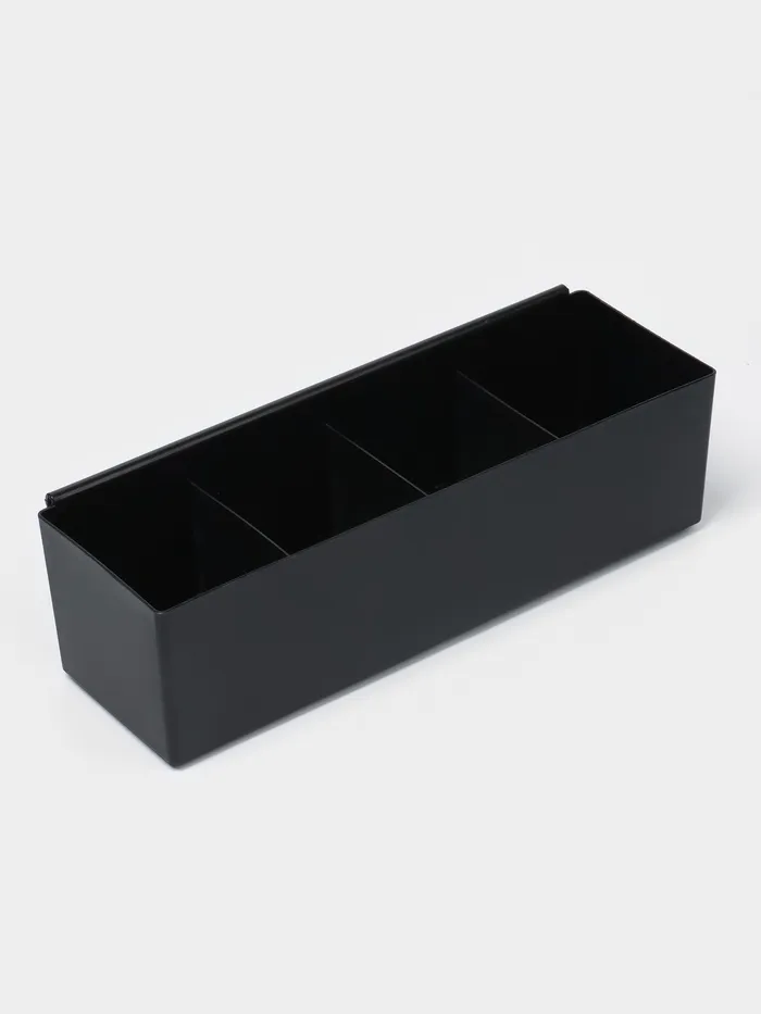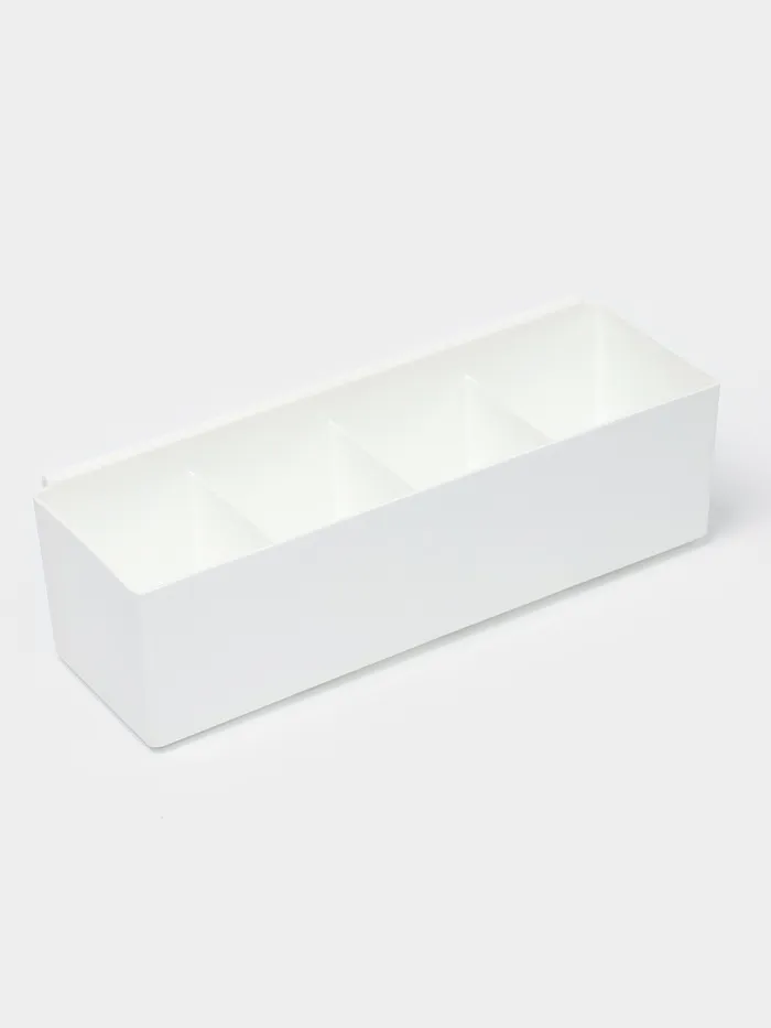 Органайзер для белья с четырьмя отделениями — это удобное решение для хранения и сортировки носков, нижнего белья и других мелких вещей. Компактный размер и продуманная конструкция делают его идеальным для шкафов, комодов или путешествий. Изготовленный из прочного пластика, органайзер сохраняет форму даже при длительном использовании.