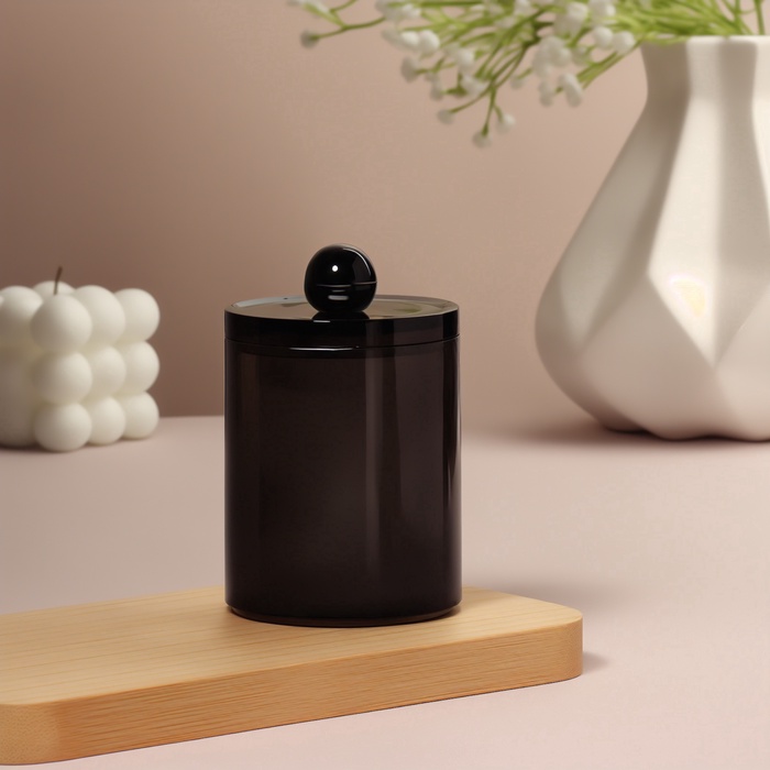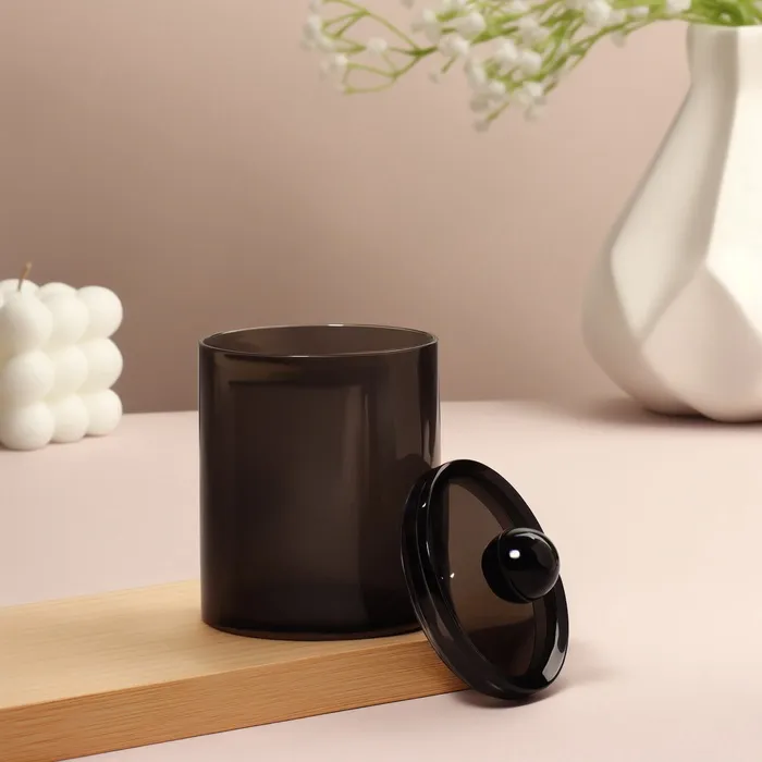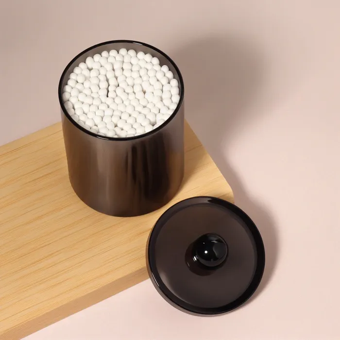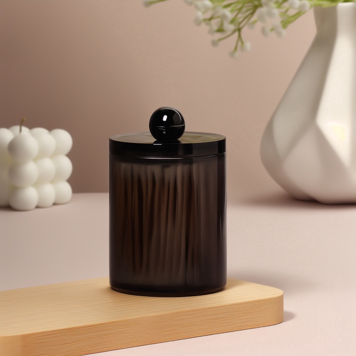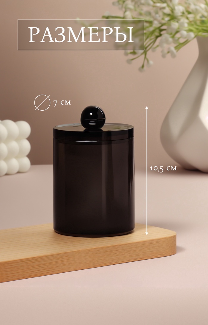 Органайзер для для ватных палочек, с крышкой, d=7×10.5 см, полупрозрачный, чёрный — Характеристики