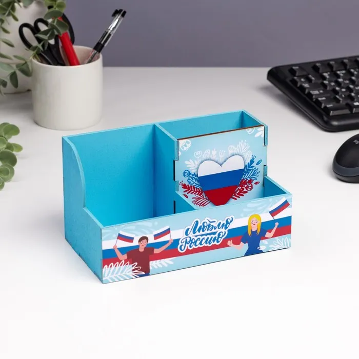 Органайзер для канцелярии «Люблю Россию», 3 отделения, 18.5×10×10 см — Характеристики