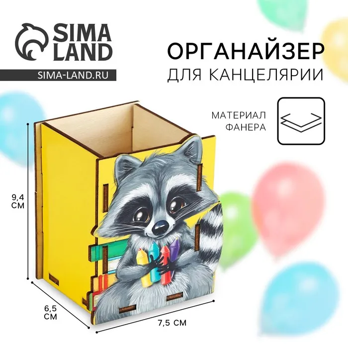 Органайзер для канцелярии «Милый енотик», размер в собранном виде 7.5 х 6.5 х 9.4 см