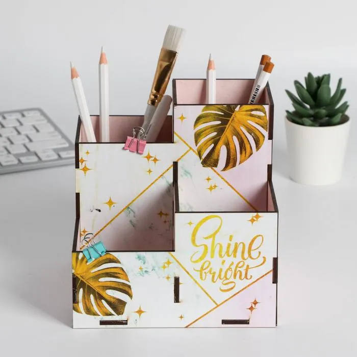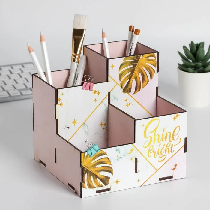 Настольный органайзер для хранения канцелярии – универсальное изделие, которое поможет без лишних хлопот организовать пространство на рабочем столе. Отлично впишется в интерьер и позволит сделать вашу работу максимально продуктивной, ведь удобное рабочее место – залог успешной деятельности. А еще подобный органайзер станет отличным подарком для людей, которые ценят практичные презенты и любят порядок во всем.