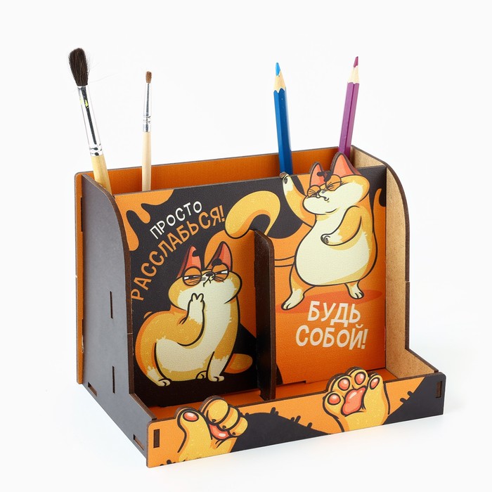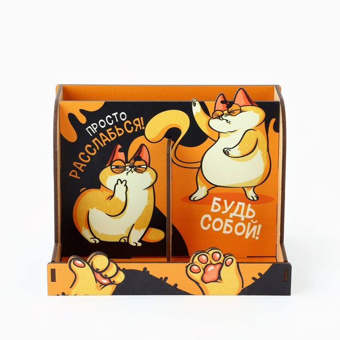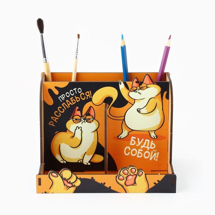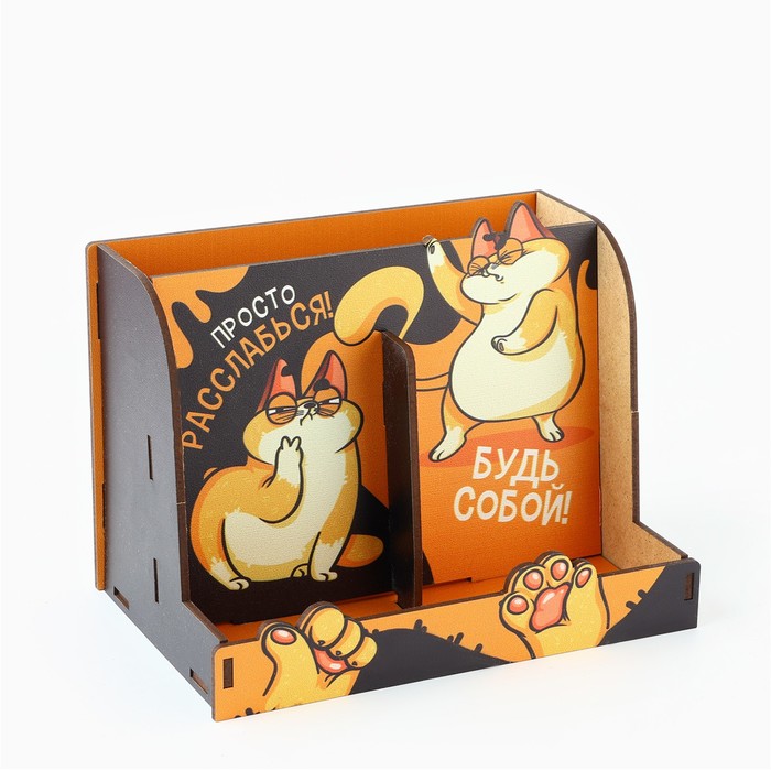 Органайзер для канцелярии, настольный, с местом под телефон «Рыжий кот»