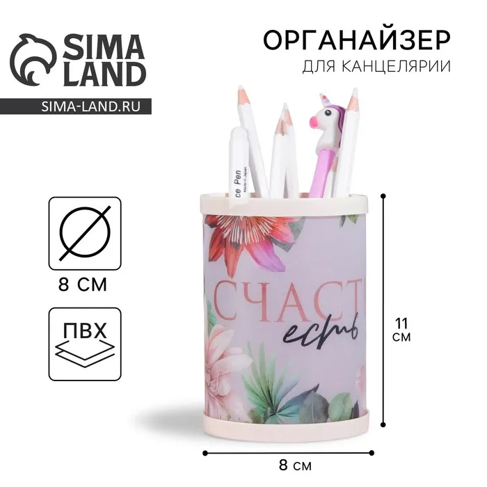 Органайзер для канцелярии, подставка для ручек и карандашей «Счастье есть» — Характеристики
