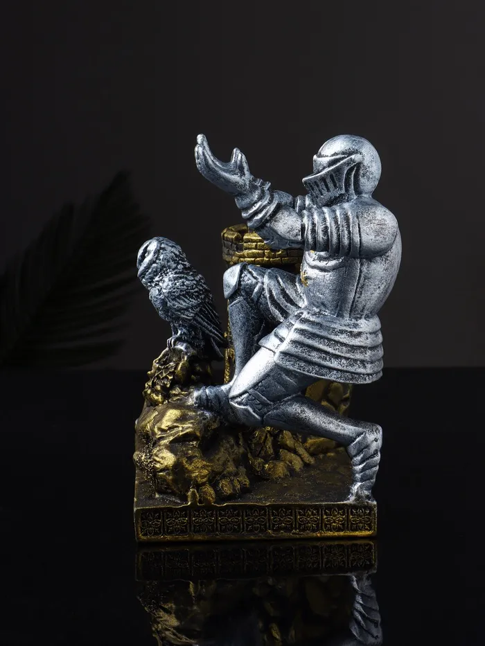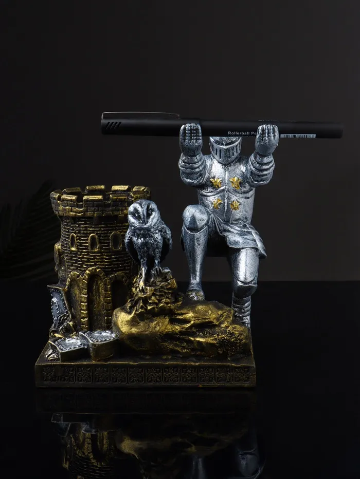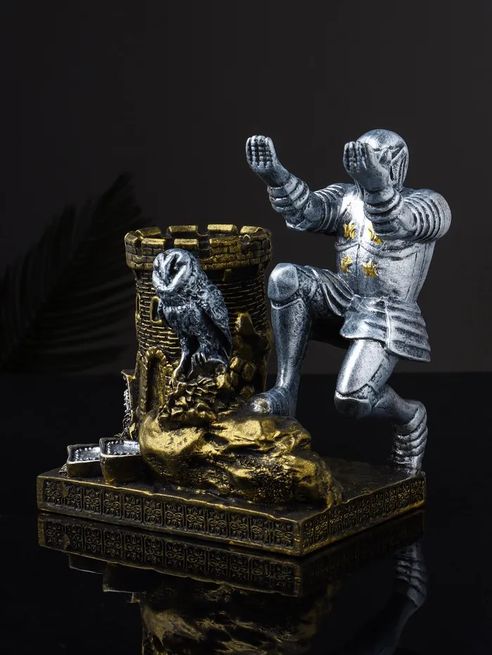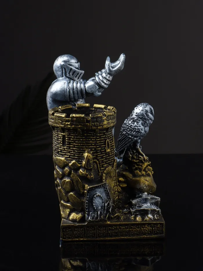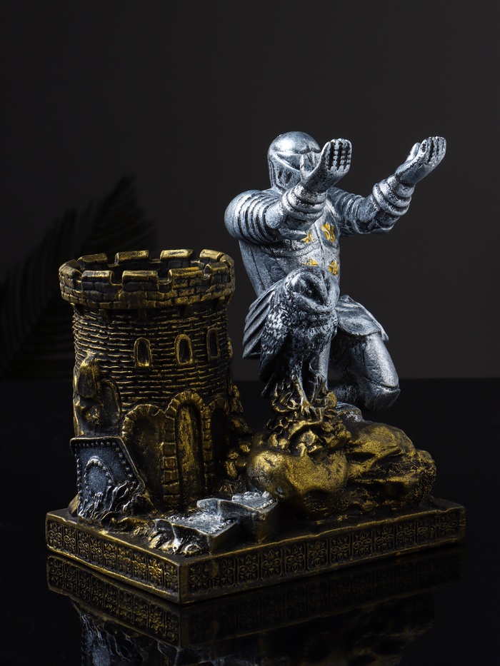 Изделие выполнено из высококачественного полистоуна, который славится своей прочностью и долговечностью. Разноцветное покрытие добавляет изделию особую выразительность: от детализированных доспехов рыцаря до мягких перьев совы. Каждая черта проработана с особым вниманием к деталям, что делает этот органайзер не просто функциональным предметом, а настоящим произведением искусства.