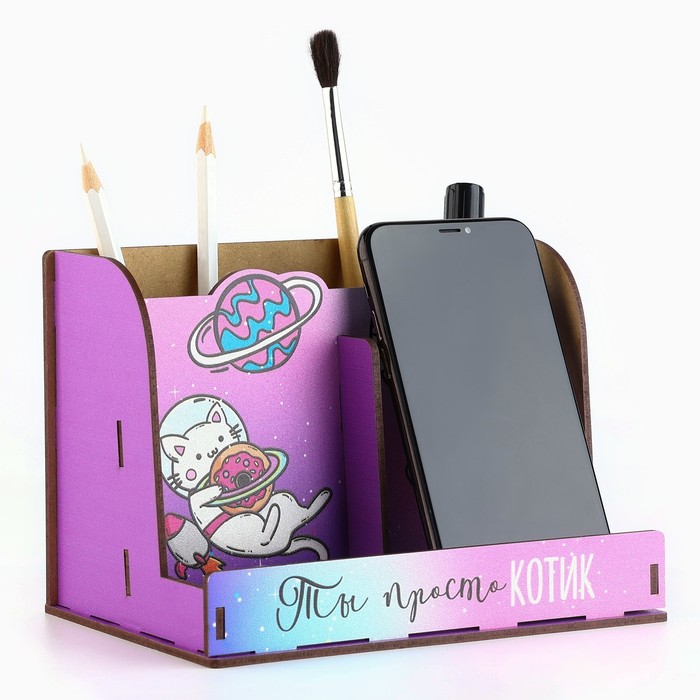 Органайзер для канцелярии, с местом под телефон «Ты просто котик» — Характеристики