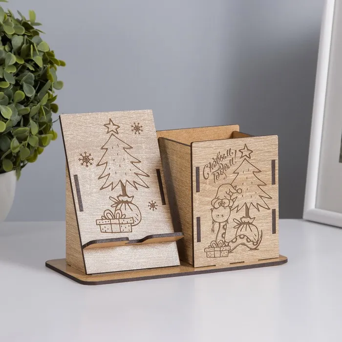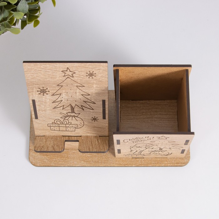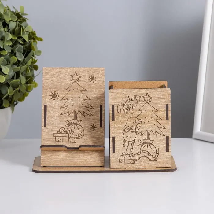 Органайзер для канцелярии с подставкой под телефон «Ёлочка и змейка», 18×12.5×9 см, набор 8 деталей — Характеристики