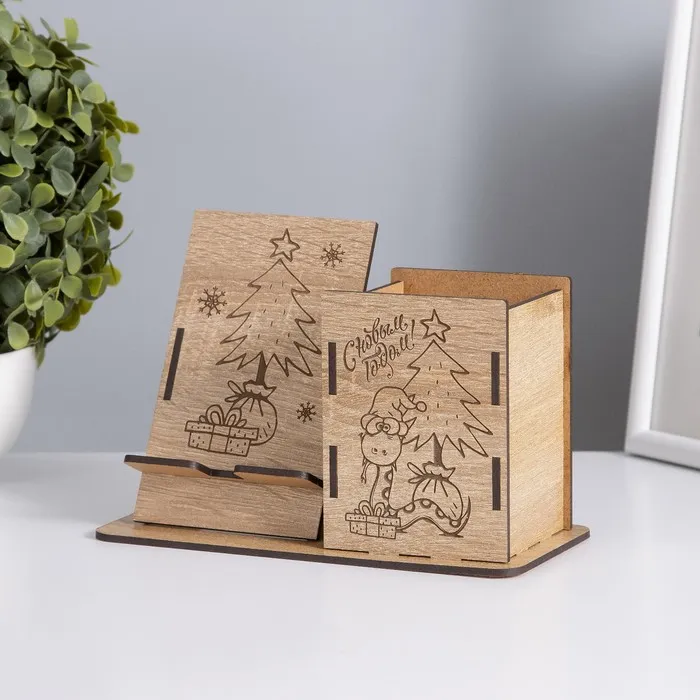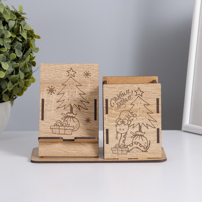 Органайзер для канцелярии с подставкой под телефон «Ёлочка и змейка», 18×12.5×9 см, набор 8 деталей