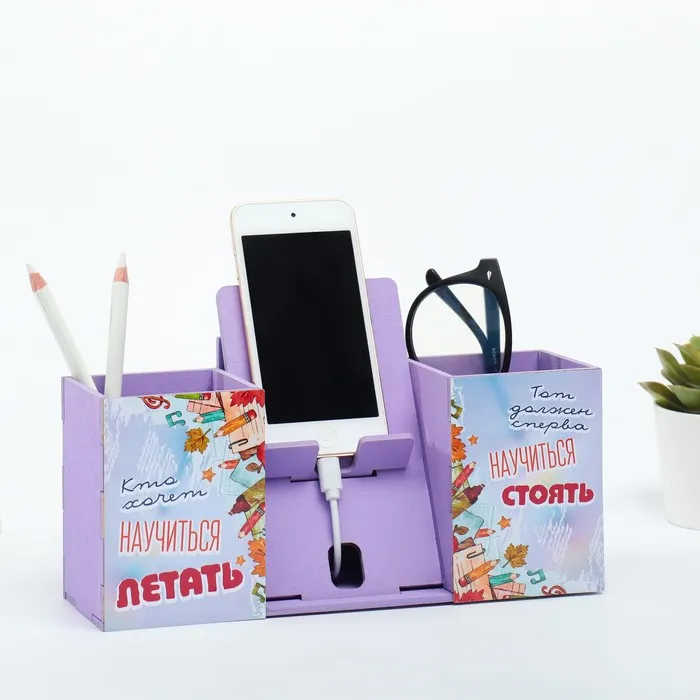 Органайзер для канцелярии с подставкой под телефон «Кто хочет научиться летать», 23×7×14 см — Характеристики