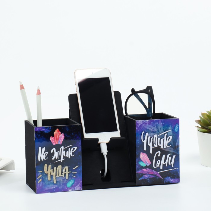 Органайзер для канцелярии с подставкой под телефон «Не ждите чуда», 23×7×14 см — Характеристики