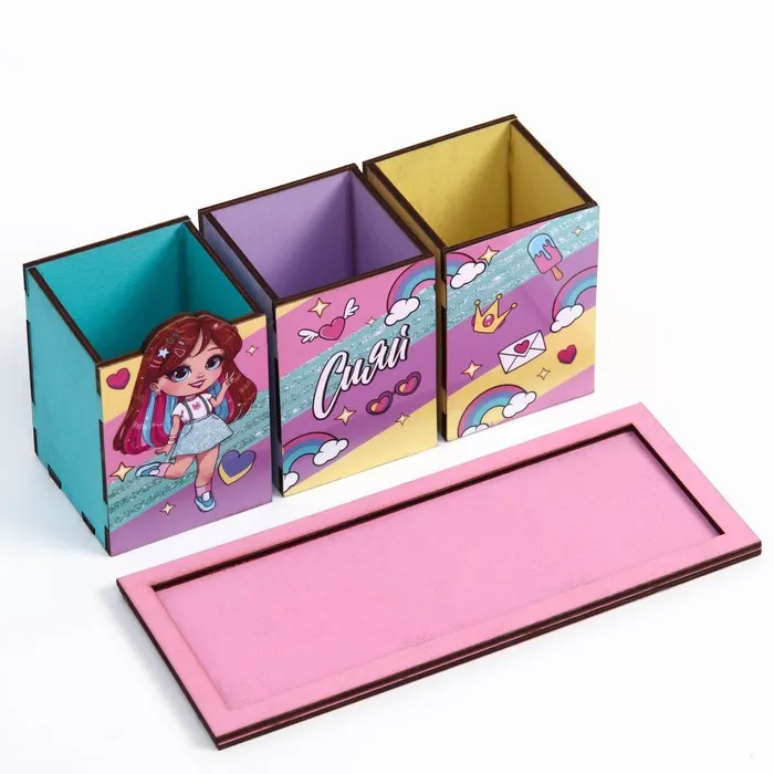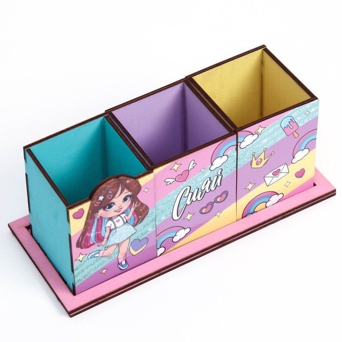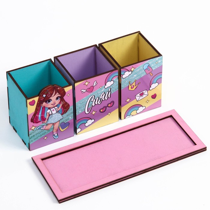 Органайзер для канцелярии «Сияй» девочка, 6,5 х 6,5 х 12,2 см