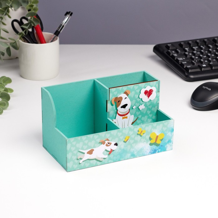 Органайзер для канцелярии "Собачка" сердечки, 3 отделения, 18,5х10х10 см — Характеристики