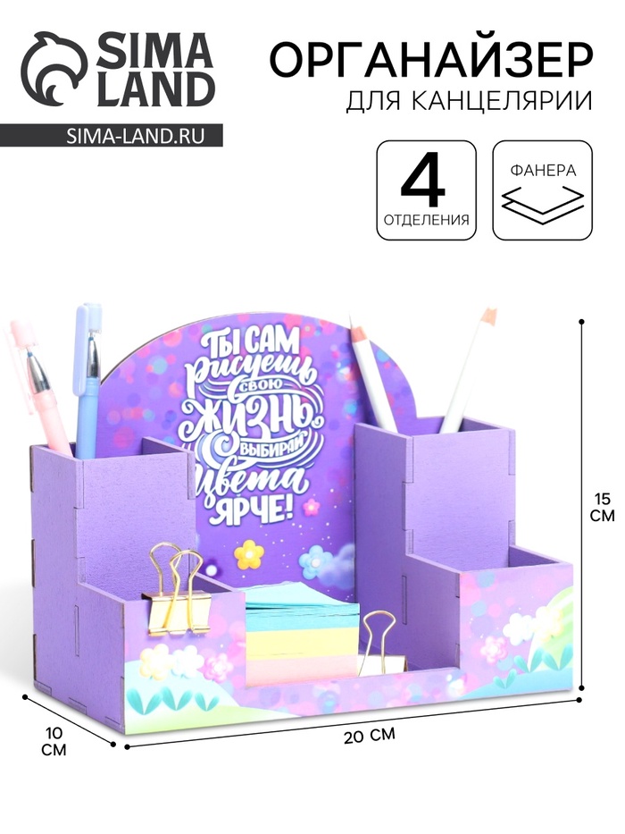 Органайзер для канцелярии «Ты сам рисуешь свою жизнь!» 20×15×10 см — Характеристики