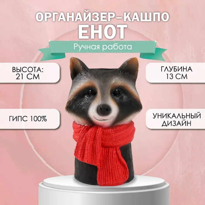 Органайзер для канцтоваров «Енот», подставка для мелочей, 21×13×14 см, глубина 13 см — Характеристики
