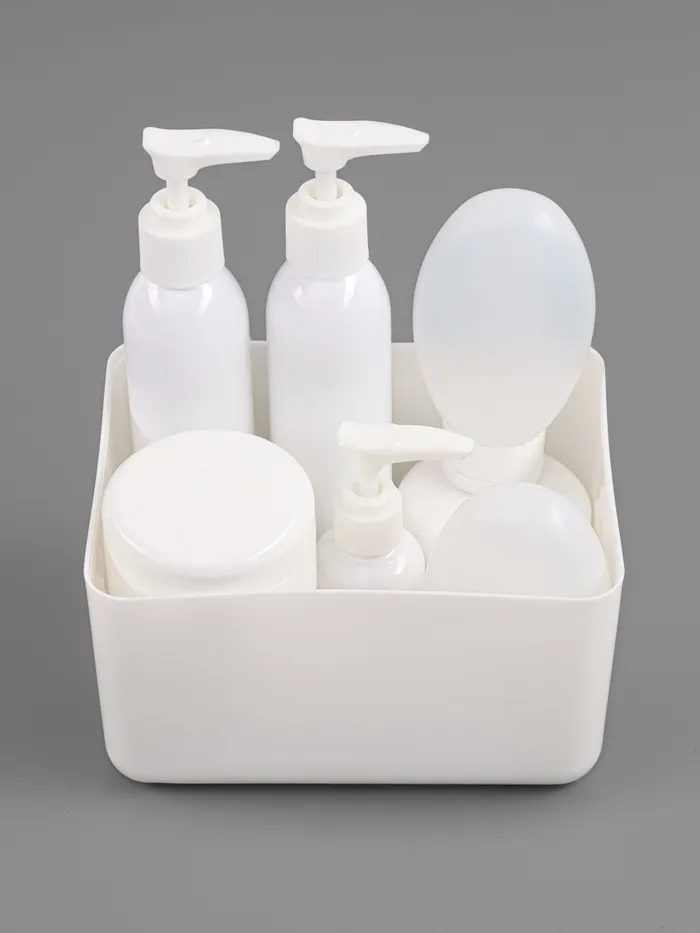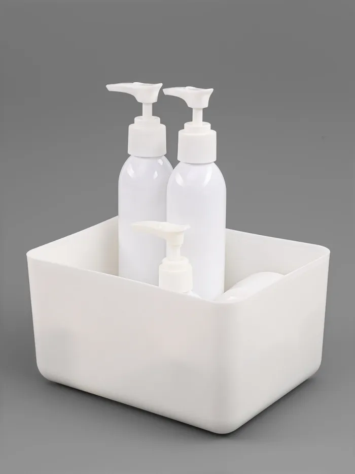 Пластиковый контейнер белого цвета — удобное решение для хранения косметики и мелких принадлежностей. Просторный объем и открытая конструкция обеспечивают быстрый доступ к средствам ухода и декоративной косметике. Подходит для размещения на полке, туалетном столике или в ванной комнате.