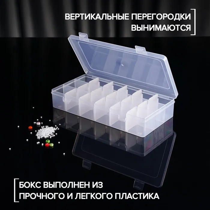 Органайзер для хранения, 18 ячеек, съёмные перегородки, пластик, 23×12×4 см, прозрачный — Характеристики