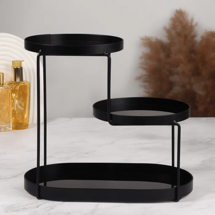 Этот стильный органайзер для хранения от QF — идеальный помощник для поддержания порядка на вашем столе или в ванной комнате. Сочетание прочного металла и прозрачного стекла делает его не только функциональным, но и эстетически привлекательным. Три секции разной высоты создают многоуровневую систему, позволяющую удобно разместить косметику, аксессуары или небольшие предметы, такие как флаконы с духами, кремы и баночки.