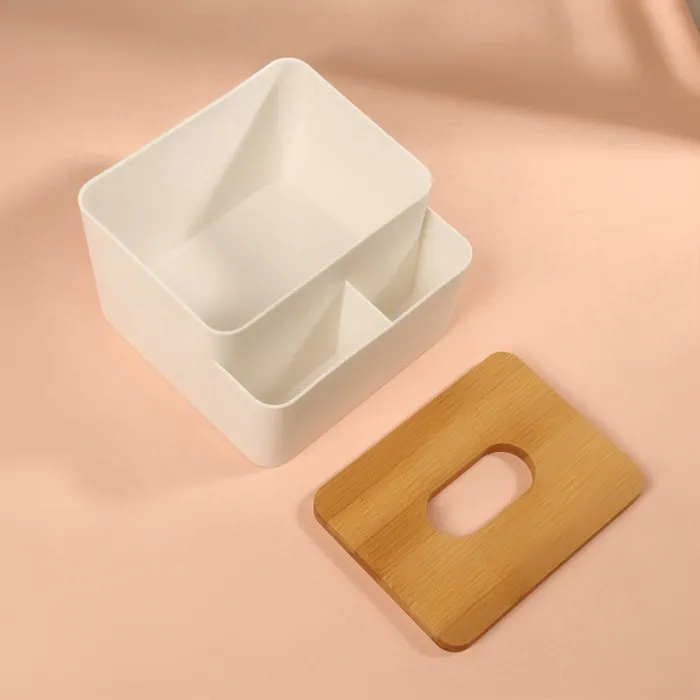 Сочетание белого и коричневого цветов придает изделию современный минималистичный вид, который гармонично впишется в любой интерьер. Выполненный из прочного пластика и дерева, органайзер устойчив к повседневному использованию и не теряет своего внешнего вида с течением времени.