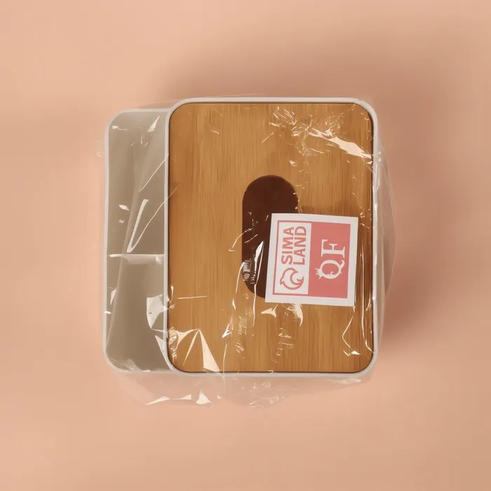 Органайзер для хранения «BAMBOO», с крышкой, 3 секции, 16×15×10 см, белый, коричневый — Характеристики