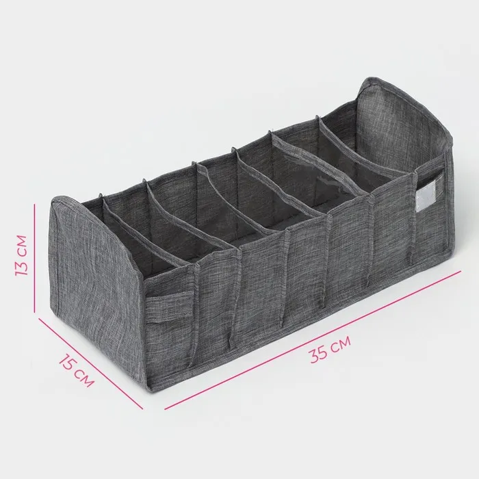 Органайзер для хранения белья Доляна, 7 ячеек, 35×15×13 см, серый — Характеристики