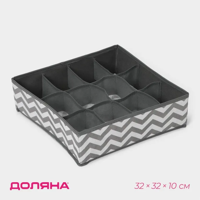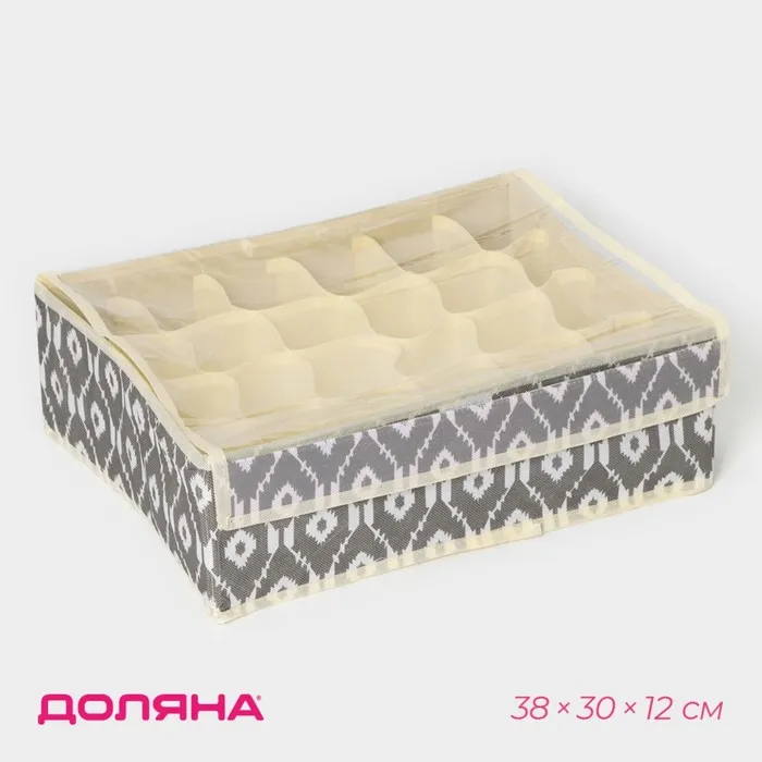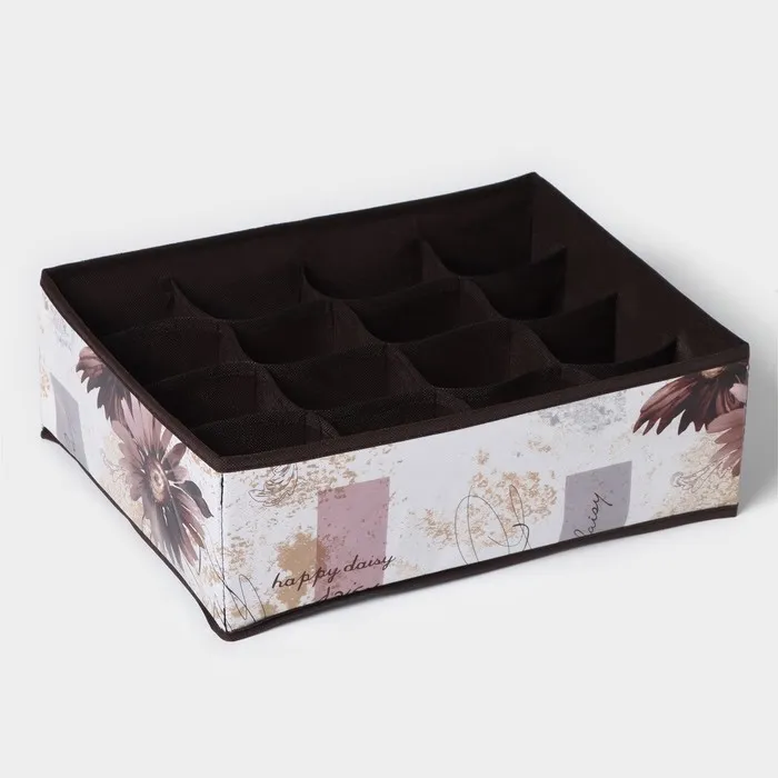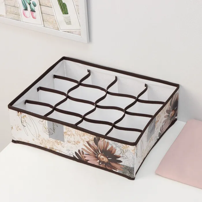 Органайзер для хранения белья Доляна «Астра», 12 ячеек, 32×24×12 см, коричневый — Характеристики