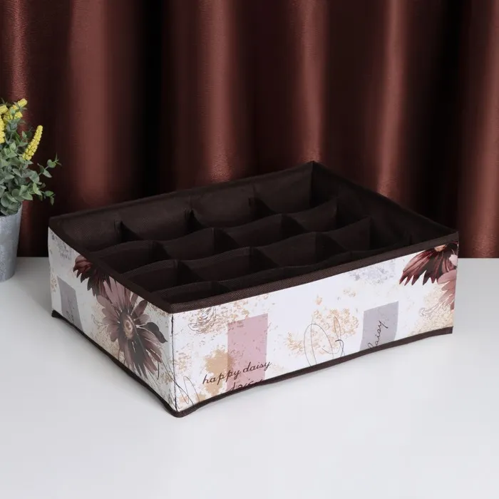 Органайзер для хранения белья Доляна «Астра», 24 ячейки, 38×30×12 см, коричневый — Характеристики