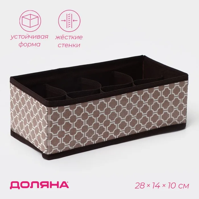 Органайзер для хранения белья Доляна «Астра», 7 ячеек, 34×30.5×10 см, коричневый — Характеристики