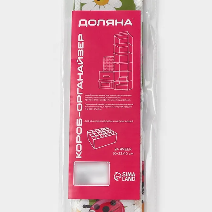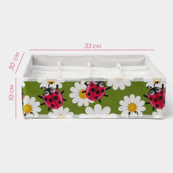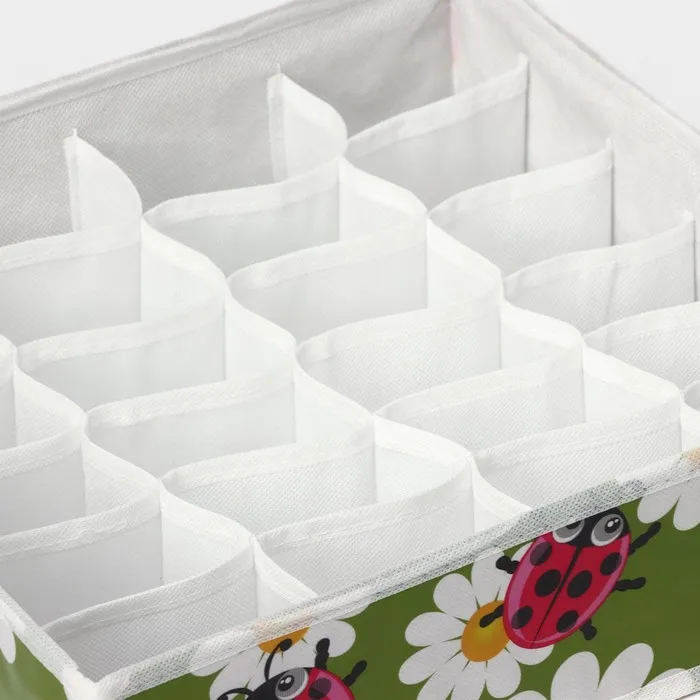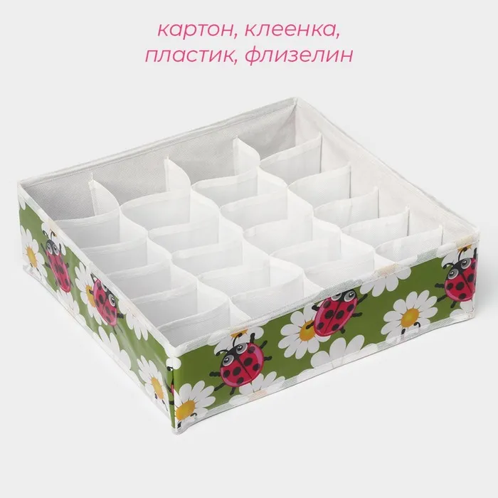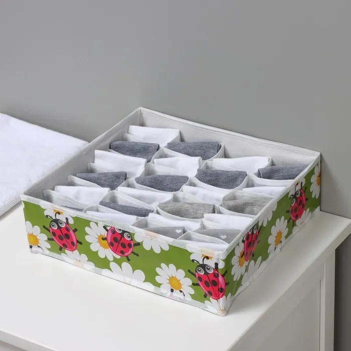 Органайзер для хранения белья Доляна «Божьи коровки», 24 ячейки, 30×33×10 см, зелёный — Характеристики