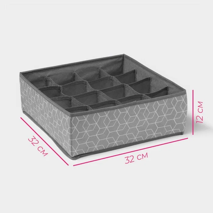 Органайзер для хранения белья Доляна «Фора», 16 ячеек, 32×32×12 см, серый — Характеристики