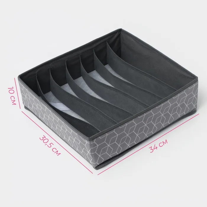 Органайзер для хранения белья Доляна «Фора», 7 ячеек, 34×30.5×10 см, серый — Характеристики