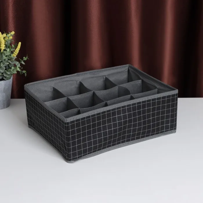 Органайзер для хранения белья Доляна «Кло», 12 ячеек, 32×24×12 см, чёрный — Характеристики