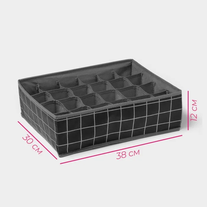 Органайзер для хранения белья Доляна «Кло», 24 ячейки, 38×30×12 см, чёрный — Характеристики
