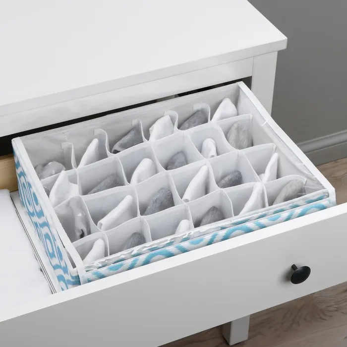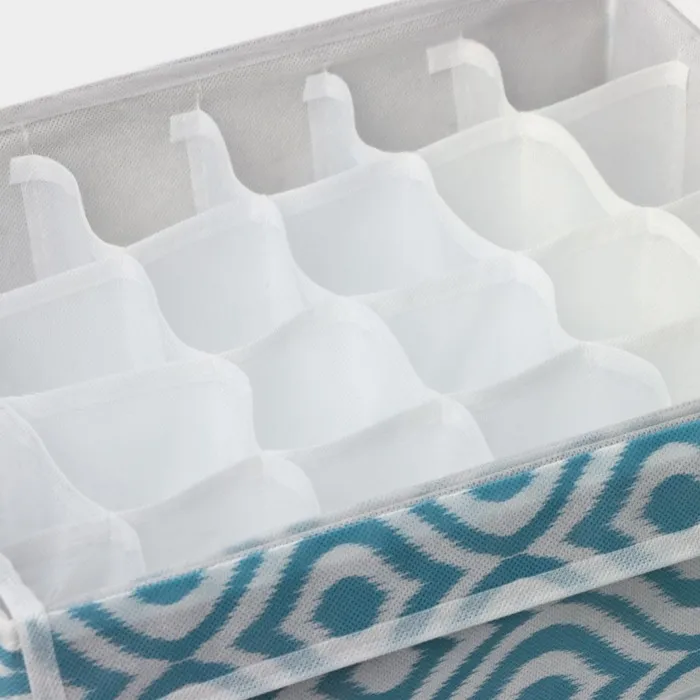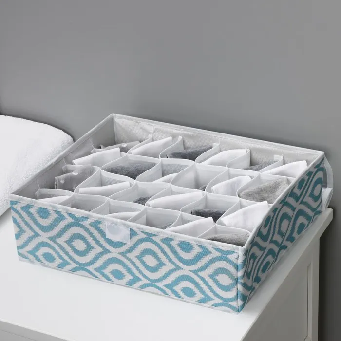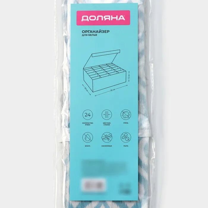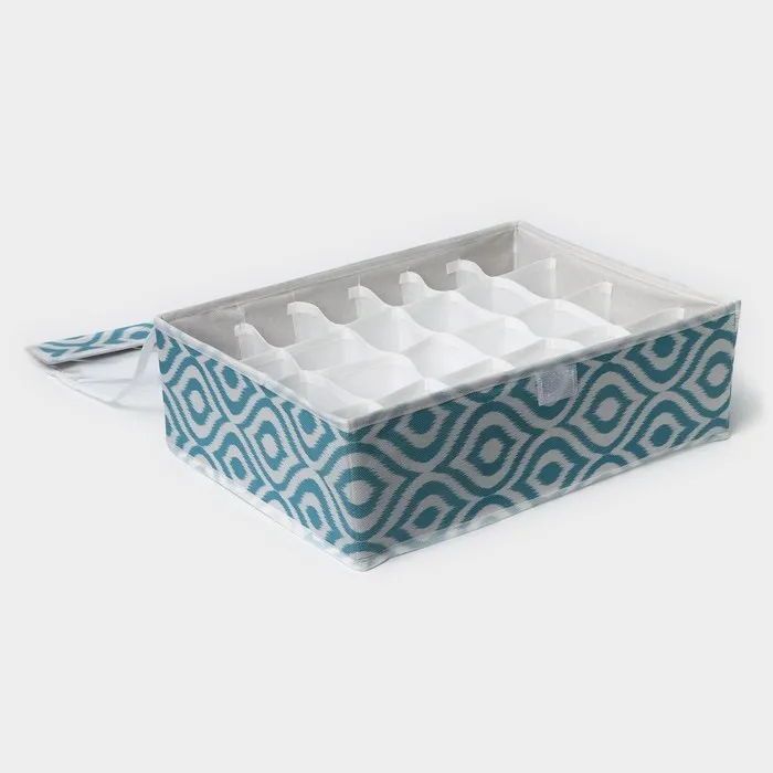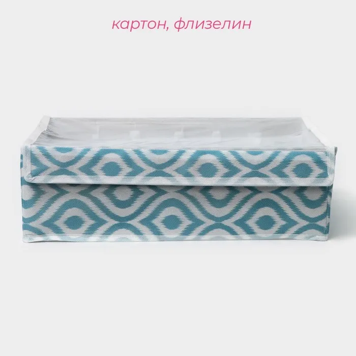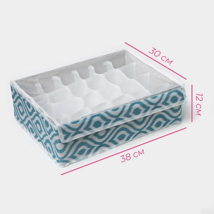Органайзер для хранения белья Доляна «Лагуна», 24 ячейки, с прозрачной крышкой, 38×30×10 см, бирюзовый — Характеристики
