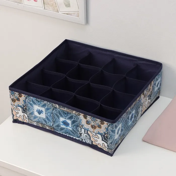 Органайзер для хранения белья Доляна «Мозаика», 16 отделений, 32×32×12 см, цвет синий — Характеристики