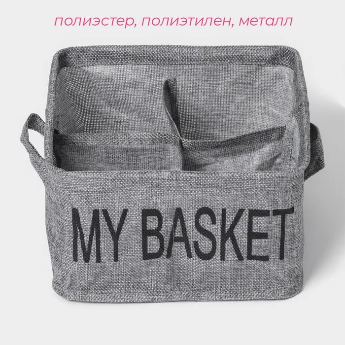 Органайзер для хранения белья Доляна My Basket, 4 ячейки, 20×20×12 см, серый — Характеристики