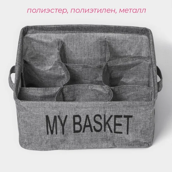 Органайзер для хранения белья Доляна My Basket, 9 ячеек, 28×28×12 см, серый — Характеристики