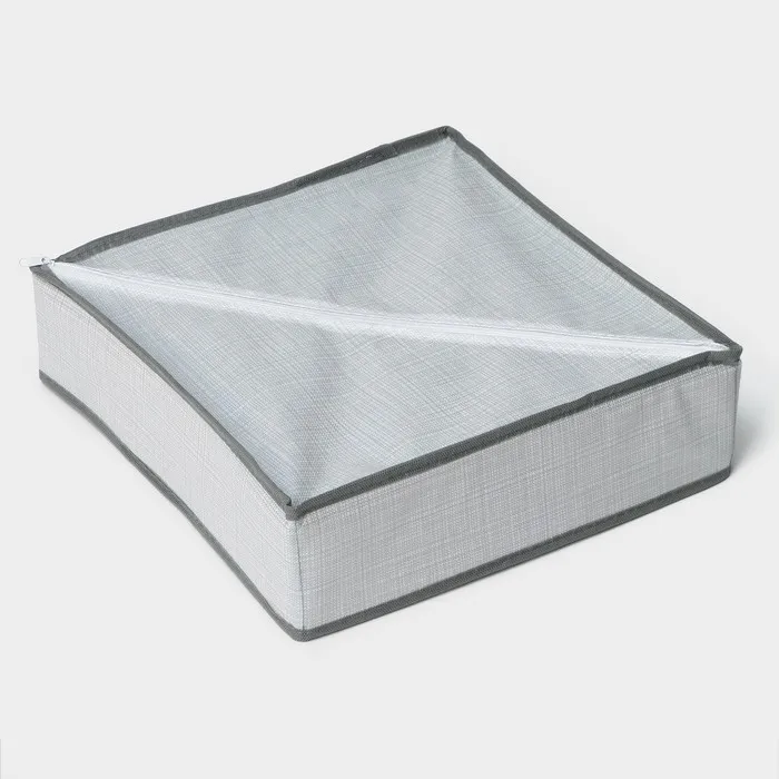 - Прямоугольный короб с легкостью поместятся на полке в многоярусном шкафу, секционном шкафчике и даже прикроватной тумбочке.