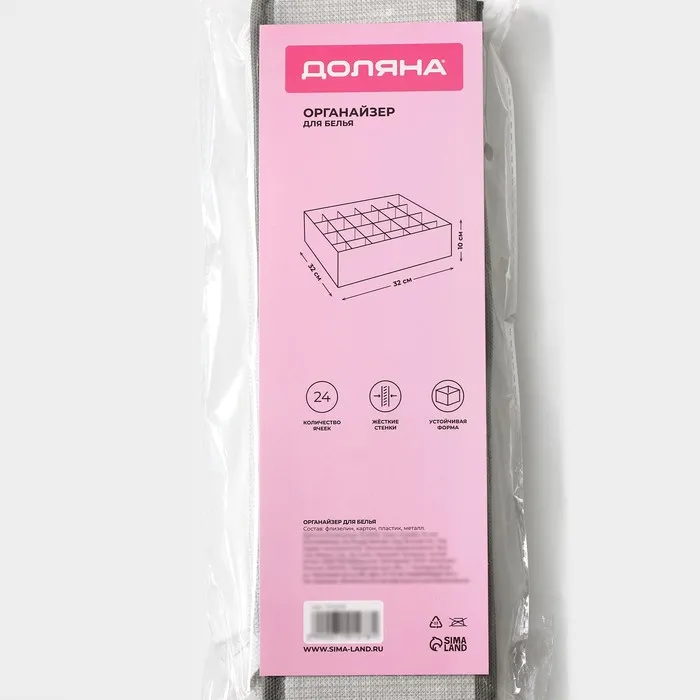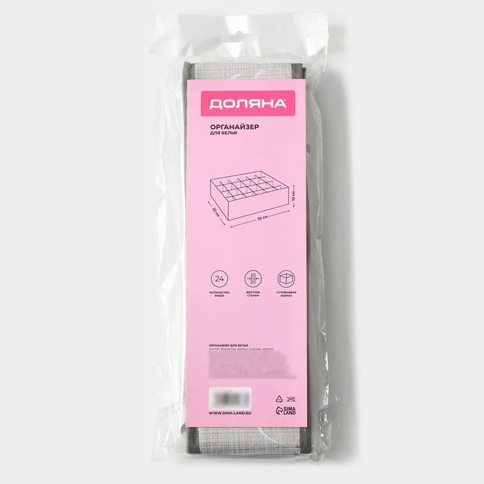 Органайзер для хранения белья Доляна «Нить», 24 ячейки, 32×32×10 см, цвет серый — Характеристики