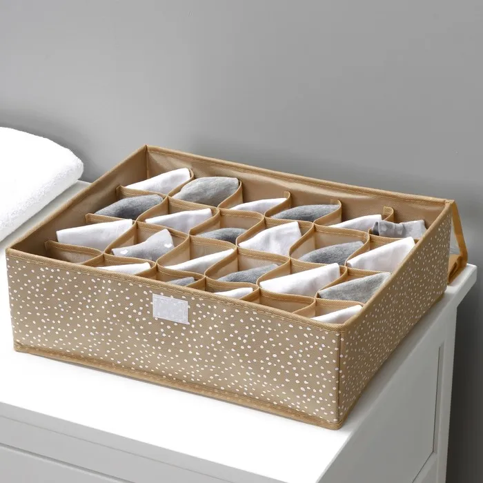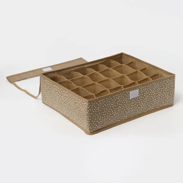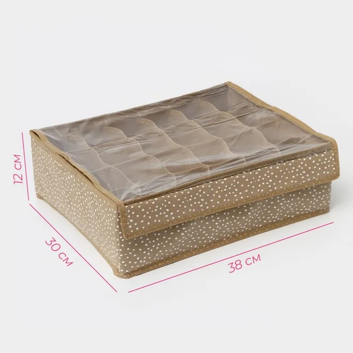 Органайзер для хранения белья Доляна Points, 24 ячейки, с прозрачной крышкой, 38×30×12 см, бежевый — Характеристики