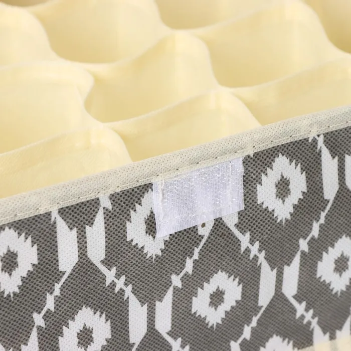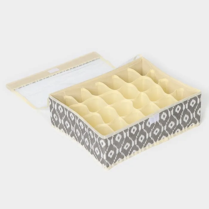 Органайзер для хранения белья Доляна «Ромбы», 24 ячейки, с прозрачной крышкой, 38×30×12 см, серый — Характеристики