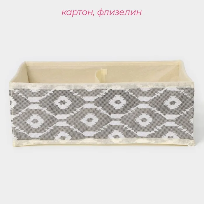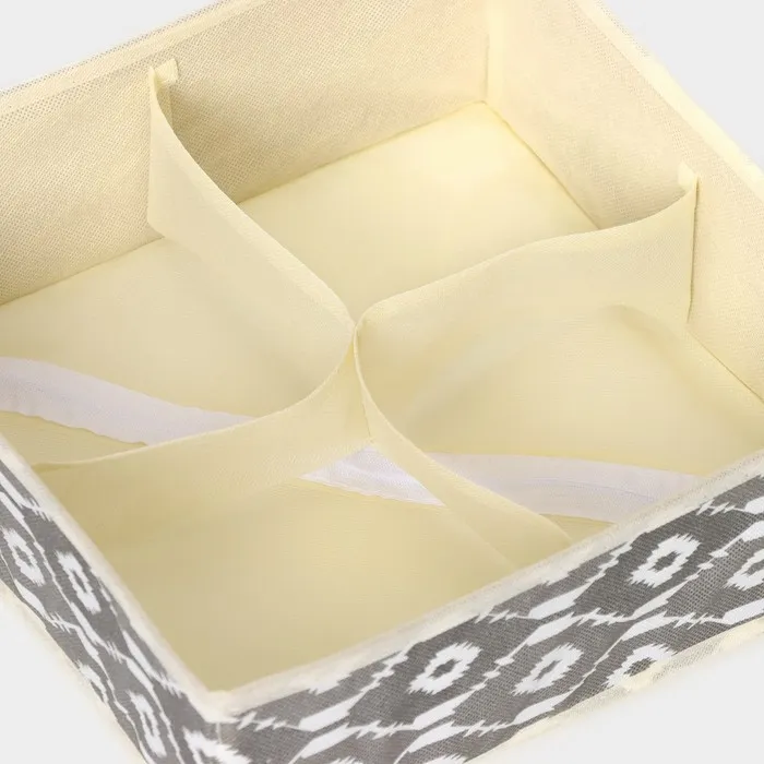 Органайзер для хранения белья Доляна «Ромбы», 4 ячейки, 29×29×10 см, серый — Характеристики