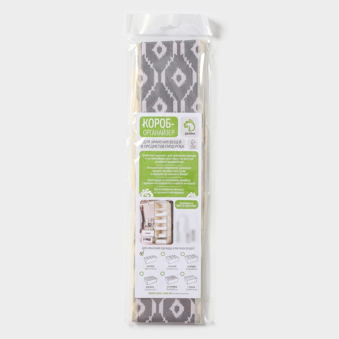 Органайзер для хранения белья Доляна «Ромбы», 8 ячеек, 28×14×10 см, серый — Характеристики